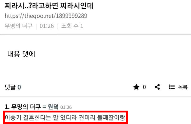 2021년 3월에 한 온라인 커뮤니티에 이승기의 열애 예언글이 올라왔었는데요. 그 글의 작성자는 "이승기 결혼한다는 말이 있더라. 견미리 둘째딸이랑"이라고만 썼습니다. 하지만 그 당시에는 네티즌들의 반응은 싸늘했는데요. 근거없는 글에 오히려 비난이 쏟아졌었지요.