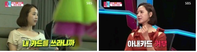 이지애 아나운서가 자기 카드를 쓰라고 했지만, 김정근은 아내카드 사용 거부.