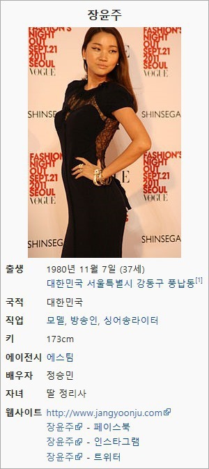 장윤주 키는 173cm. 모델로서는 큰키가 아니라는데, 장윤주의 비율 쩌는 명품 몸매는 일품이죠.