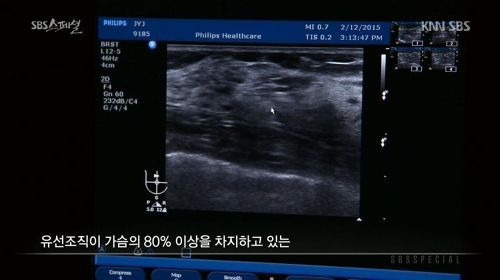 "유선 조직이 가슴의 80%이상을 차지하고 있는 고도의 치밀유방이다. 지방 이식한 것도 안보인다. 보면 다 안다. (인공적인 것이)아무것도 없다. 자연산 맞다. 모유 잘 나오겠다"고 진단했습니다.