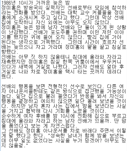 게다가 1987년 당시 정미홍의 나이가 30살이었으니, 당시 한국의 방송계 관행으로 보면, 굉장히 나이가 많은 축(?)에 속한다고 볼 수 있습니다.