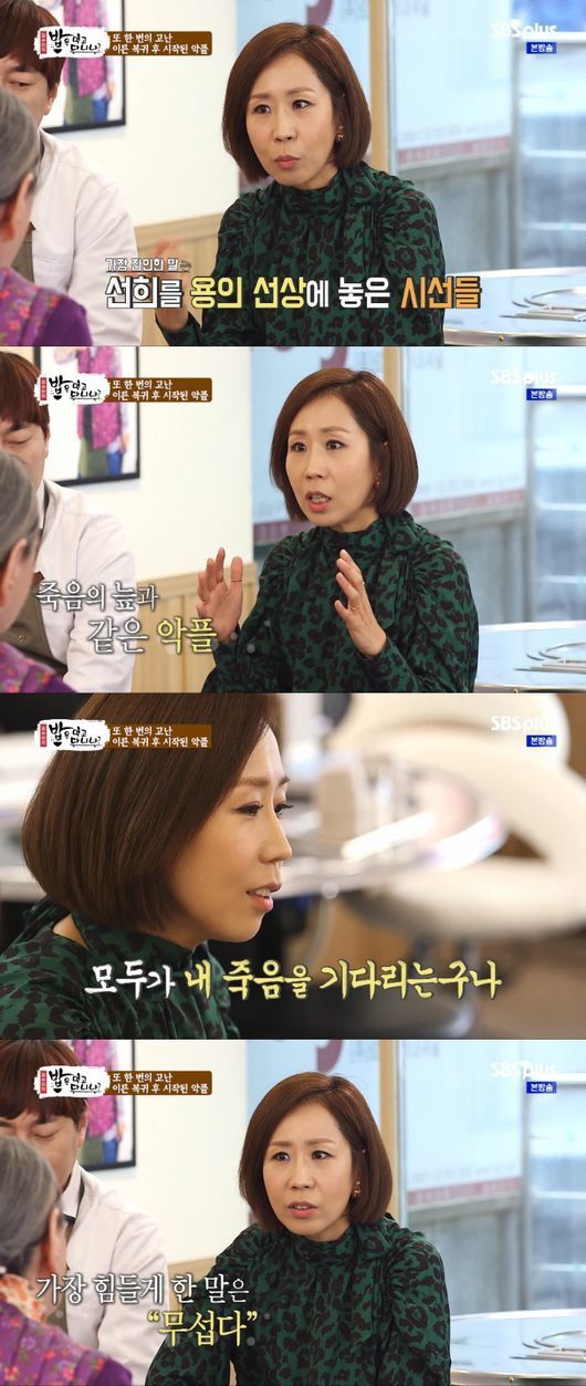 그리고 복귀 이후 자신을 향해 더욱 많아진 악성 댓글에 대해서도 털어놓았는데요, 정선희는 "악플을 보면 나는 죽어야만 하는 사람"이라며 "어떤 악플러는 나를 보면 무섭다고 말했는데, 사람들이 그렇게까지 오해할 줄 몰랐다"고 말했습니다.