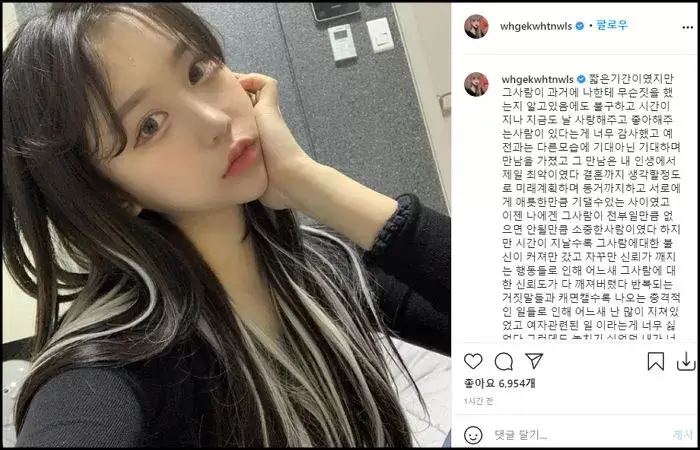 이어 “그 만남은 내 인생에서 제일 최악이었다. 결혼까지 생각할 정도로 미래 계획을 하며 동거까지 하고 서로에게 애틋한 만큼 기댈 수 있는 사이였고, 이젠 나에겐 그 사람이 전부일 만큼 없으면 안 될 만큼 소중한 사람이었다”고 털어놨습니다.