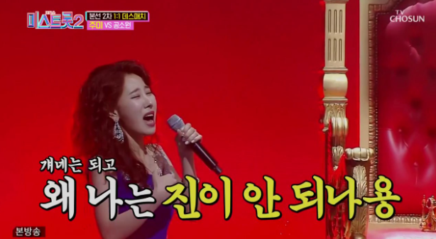 그런 그녀가 화제의 서바이벌 프로그램인 ‘미스트롯 2’에 도전하게 되었는데요. 특히 김영철의 ‘안되나용’을 선곡한 무대는 최고의 임팩트를 주며 많은 사람들에게 주미라는 가수를 각인시킬 수 있는 무대였습니다.