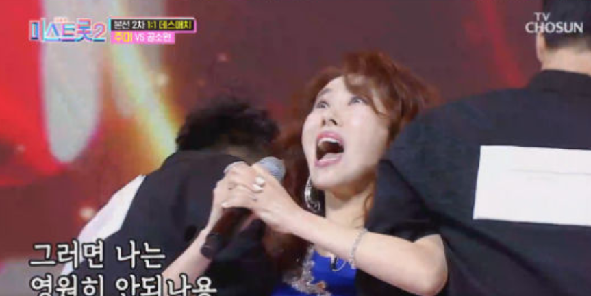 1988년 생으로 32세인 가수 주미는 ‘미스트롯 2’에서 1월 14일 방송 본선 2차 1대 1 데스매치에서 김영철의 곡 ‘안되나용’을 부르며 파격 퍼포먼스를 선보였으며 심사위원 올하트를 받아 큰 화제를 모았는데요. 당시 분당 최고 시청률이 31.4%를 기록하며 뜨거운 반응을 보였습니다.