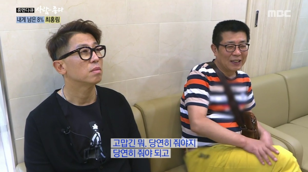 최홍림은 2년 전 말기 신부전증을 진단 받았습니다. 당시 신장이 다 망가져 이식을 받는 것만이 살길이었는데 형이 자신의 신장을 주겠다면 연락이 왔는데 당시 걸음을 걸을수도 없을 정도로 힘든 최홍림은 형의 선의를 받아들였었습니다.