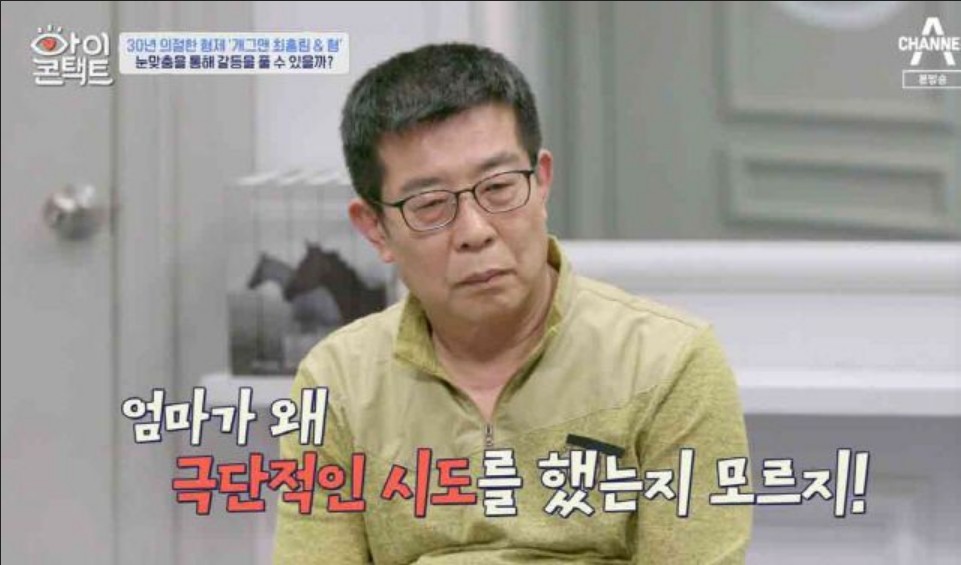 6일 방송된 '아이콘택트'에서 최홍림과 형이 등장하였습니다. 방송에서 최홍림의 아픈 가족사가 밝혀져 스튜디오가 눈물바다가 되었습니다.