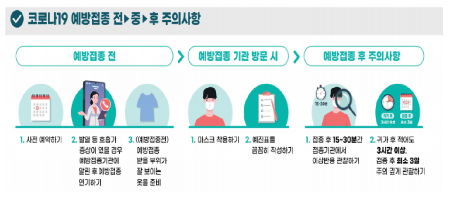 + 질병관리청에서 발표한 코로나19 예방접종 주의사항 첨부해드리겠습니다.