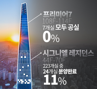 시그니엘 레지던스는 지상 42층부터 71층까지 자리하고 있는데요. 모두 223세대로 구성돼 있습니다. 주거용 오피스텔이기 때문에 주거용 입주도 가능하고 회사 법인으로도 입주할 수 있습니다. 76층부터 101층까지는 호텔로 사용되고 있습니다.