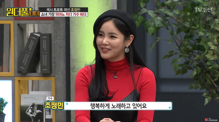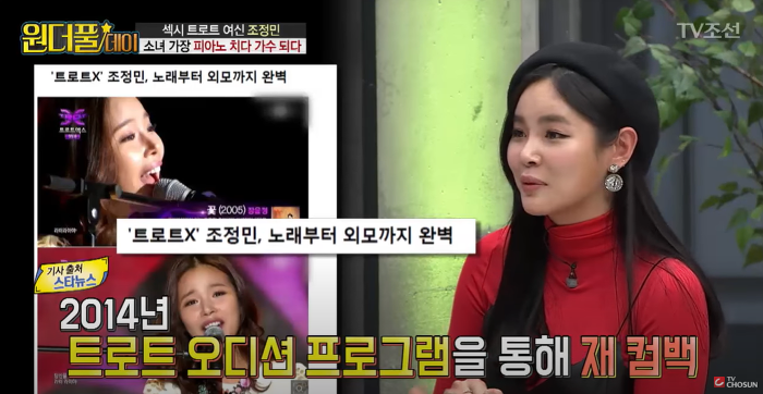 조정민이 6살 때 동네 아주머니들이 모여 반상회를 한 뒤 집에 있는 노래방 기계로 모이면 조정민 역시 노래를 불렀다고 합니다.