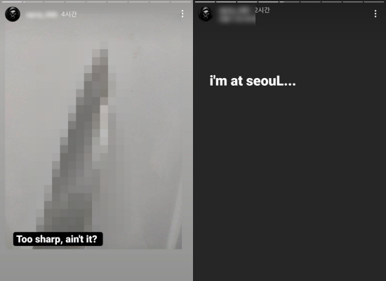 스토커는 지연에게 영문 메시지를 보냈다고 하는데요, "오늘이 마지막 밤이다", "난 서울이다"라며 협박했다고 합니다. 심지어 흉기 사진에 "날카롭지 않느냐"는 내용까지 적었다고 합니다.