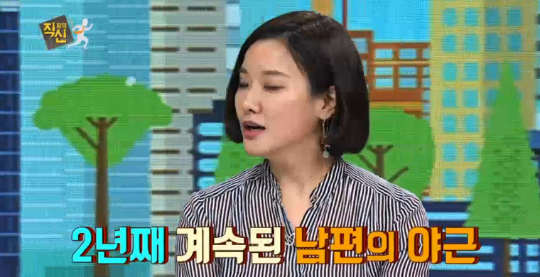 한 방송프로그램에서 결혼 생활에 대해 최초로 공개 했는데 주 5일 야근하는 남편과 통화한 내용을 보면 자세히 그 이유를 알 수 있는듯 합니다.