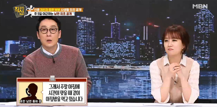 호란 전남편은 그래서 주말 아침에 시간이 나면 함께 아침 밥을 먹는다고 말하죠.. 부부가 고작 일주일에 한번 아침을 먹는다는 것은 아무리 바빠도 이해하기 힘든 부분입니다.