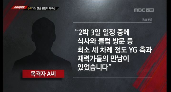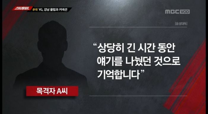 이 목격자의 진술로만 봤을땐 태국인 밥씨의 일행은 YG측의 초대에 응해 한국을 방문한 것이고 그 이후로도 지속적인 만남을 이어왔다고 볼수 있다는 것입니다.