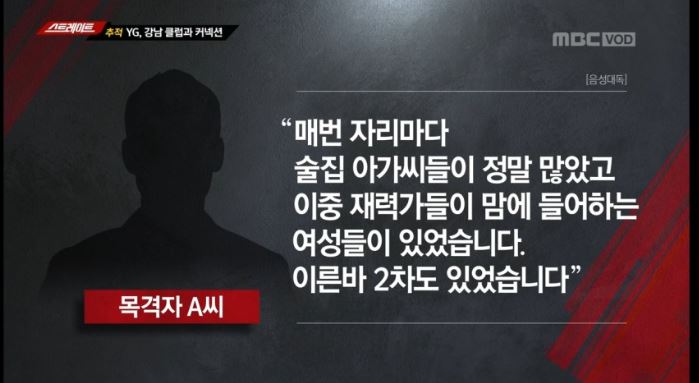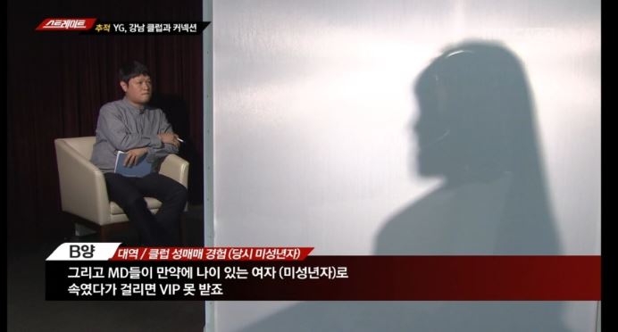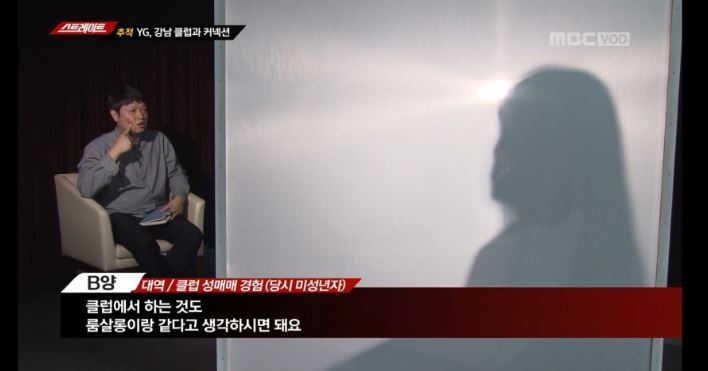 또 스트레이트에서는 클럽에서 미성년자들의 성매매도 있었다는 것을 실제 성매매 여성에게 클럽이 룸싸롱과 다를바 없다는 증언을 들었습니다.